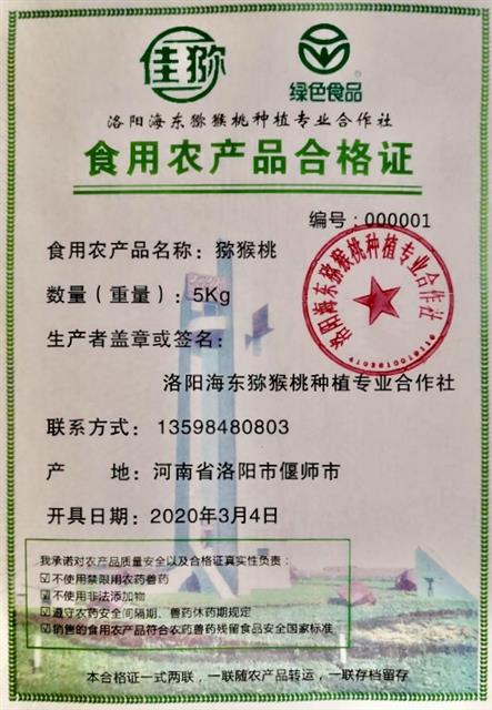 3月4日,记者从河南省洛阳市农业农村局获悉,洛阳市海东猕猴桃种植专业合作社开具出洛阳首张食用农产品合格证。这标志着洛阳市列入试行品类的食用农产品将逐步实现“带证上市”,农产品质量安全监管新模式即将开启。