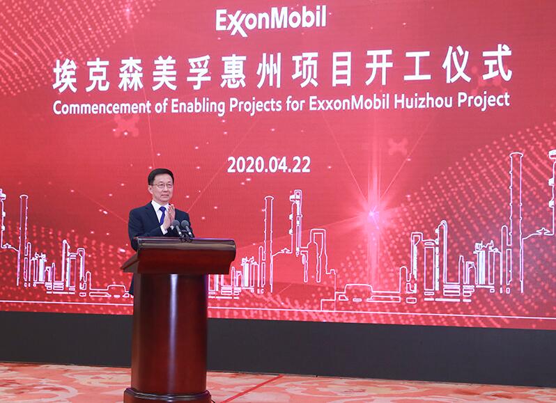 韩正出席埃克森美孚广东惠州乙烯项目"云开工"仪式