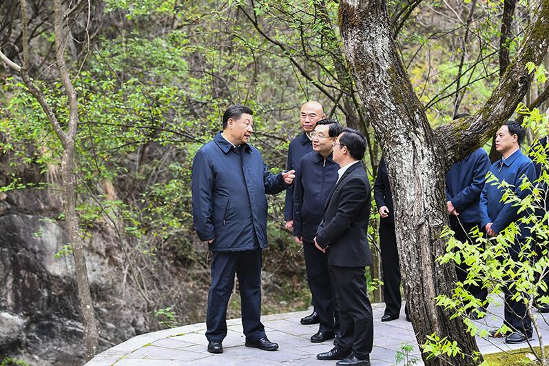 四月的三秦大地,到处春意盎然。4月20日至23日,习近平在陕西省委书记胡和平和省长刘国中陪同下,先后来到商洛、安康、西安等地,深入自然保护区、贫困山区、社区、学校、企业等,了解秦岭生态环境保护、脱贫攻坚、复工复产等情况,就统筹推进新冠肺炎疫情防控和经济社会发展工作、打赢脱贫攻坚战进行调研,看望慰问干部群众。