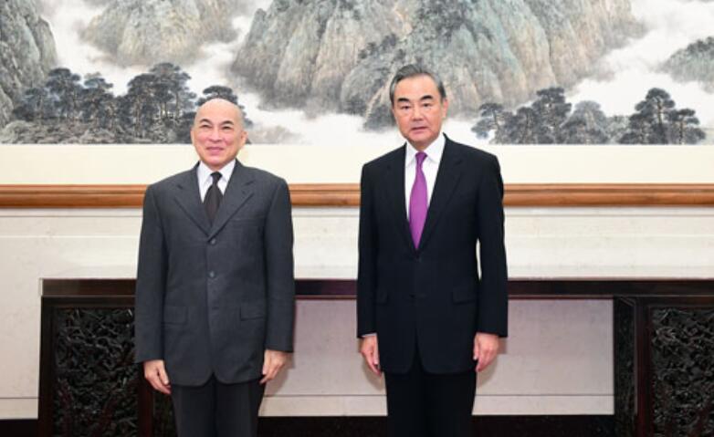 2020年5月8日,受习近平主席委托,国务委员兼外长王毅看望来京查体的柬埔寨国王西哈莫尼。