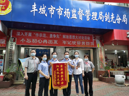 近日,丰城市顺鑫泰餐饮管理有限公司为丰城市市场监管局剑光分局送来一面“食品安全卫士 阳光执法先锋”的锦旗,对该分局强化食品安全监管、守住食品安全责任、助力企业复工复产所做工作给予高度赞誉。