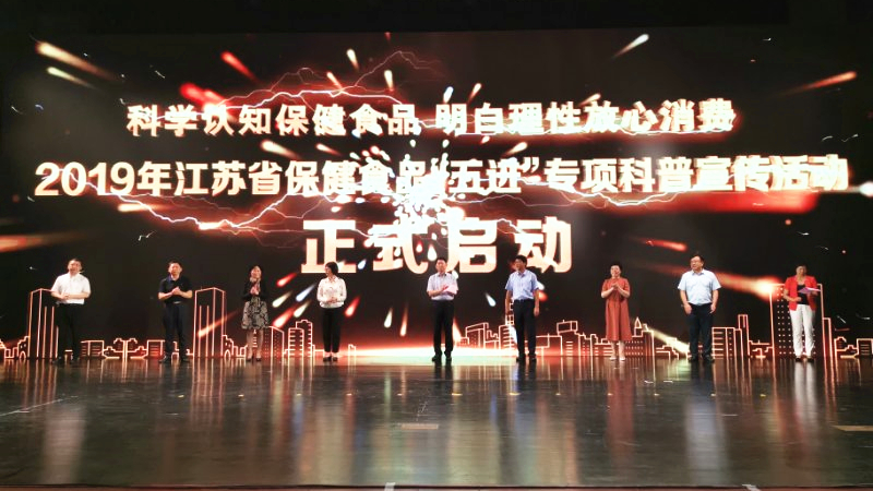 7月5日上午,2019年江苏省保健食品“五进”专项科普宣传活动在无锡启动。省市场监管局副局长樊路宏出席启动仪式并讲话,无锡市副市长王进健、高亚光出席活动。省市场监管局、无锡市市场监管局及新吴区政府相关负责人,省保化协会、省老龄产业协会、无锡市保化协会,保健食品生产经营企业、社区群众及新闻媒体等参加活动。