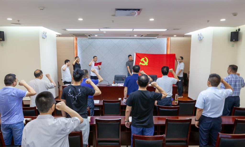 高勇带领全体党员重温入党誓词,铿锵有力的誓言激励着广大党员时刻牢记入党初心,心中有党、心中有责。