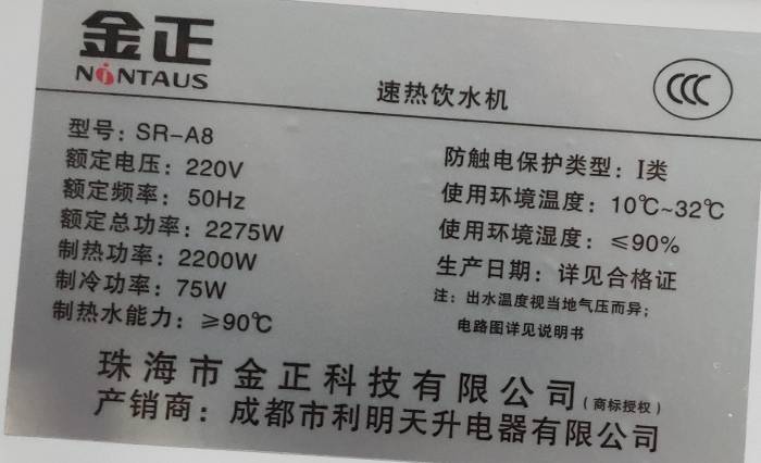 四川省市场监督管理局关于成都市利明天升电器有限公司“金正”部分速热饮水机召回的公