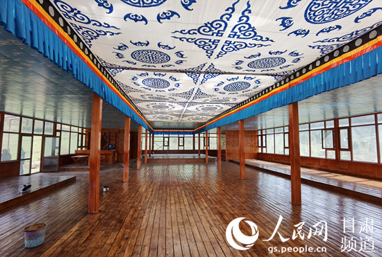 在熊猫沟景区游客接待中心正在完成装修收尾工作。走进游客接待中心一楼是具有藏家特色的宾馆房间二楼演艺大厅正在进行装潢。据了解为提升改造熊猫沟景区甘肃省市场监管局今年帮扶30万元用于游客接待中心演艺大厅装潢和购置帐篷等设备。
