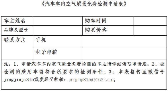 京津消协邀请您免费检测车内空气质量啦!