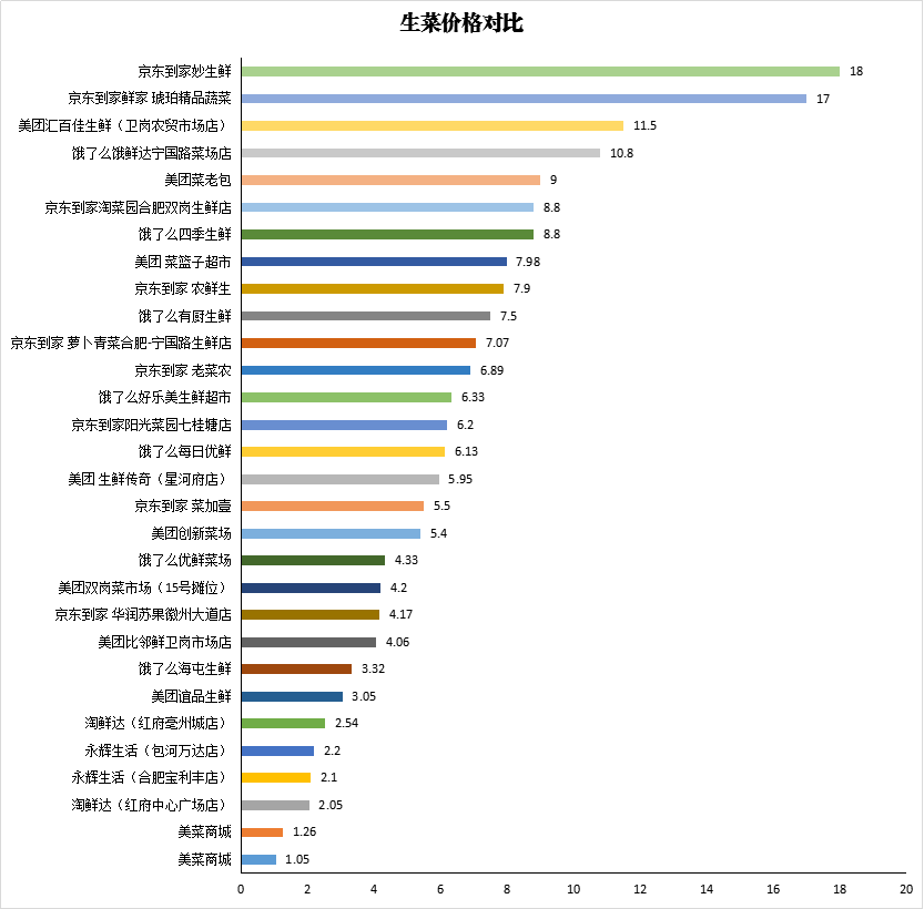 商品品质方面 从总体看,规模较大的商超商品品质和新鲜度方面较好,如永辉生活,家乐福,大润发,美菜商城、入驻美团平台的谊品生鲜、生鲜传奇,入驻饿了么平台的海屯生鲜、每日优鲜,入驻京东平台的华润苏果超市。而一些名为“*生鲜”、“农鲜*”、“生鲜超市”的平台商户送达的菜品新鲜度较差。