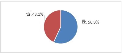 1. 56.9%的受访者双11参与了网络购物。调查结果显示,在“双11”当天,有56.9%的受访者在网购平台消费,而未参与网购的受访者占比43.1%。
