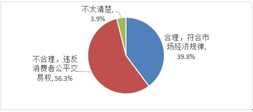 5. 56.3%的受访者认为大数据杀熟现象不合理。调查结果显示,39.8%的受访者认为大数据杀熟现象合理;56.3%的受访者认为这一现象不合理;还有3.9%的受访者不清楚情况。