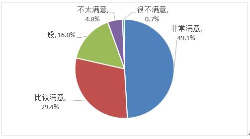 6. 49.1%的受访者对电商环境现状非常满意。调查结果显示,近一半受访者对电子商务现状非常满意;29.4%的受访者表示比较满意;16.0%的受访者表示感觉一般;此外,不太满意和很不满意的比重为4.8%和0.7%。