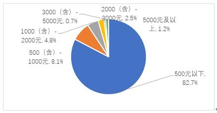 5. 57.3%的受访者主动申请退款,人均退款金额193元。调查结果显示,受访者主动申请的退款总金额为133.7万元,人均申请退款193元。其中,受访者主动申请的退款金额500元以下最多,占比82.7%。