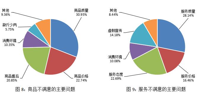 调查显示,我省2017年消费者对商品和服务消费的总体满意度为67.94%。商品质量问题是当前消费者反映最为强烈的问题。具体情况详见下图: