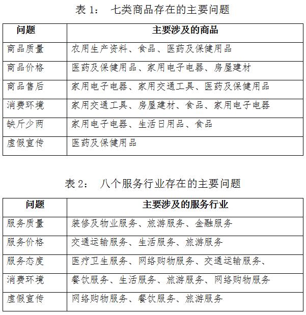 本次活动主要围绕着与消费者生活密切相关的七类商品八个服务行业进行了满意度调查,具体包括:家用电子电器、生活日用品、食品、家用交通工具、农用生产资料、房屋及建材、医药及保健用品、医疗卫生服务、餐饮服务、金融服务交通运输服务、水电气等生活服务、旅游服务、装修及物业服务、网购服务等。调查通过网络和实地调查相结合的方式,共收到调查问卷17370份。