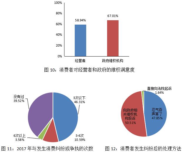 调查显示,近60%的被调查者2017年遇到过消费纠纷或争执;与商家协商无果的情况下,有50.51%的被调查者选择向政府相关维权机构投诉。消费者对政府维权机构解决问题的满意度为67.01%。