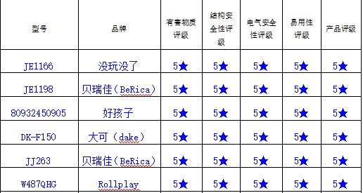 据了解,本次比较试验从消费者角度出发,将产品的评价分为有害物质评价、结构安全性评价、电气安全和说明书易用性评价等4个指标。评级结果用星数表示,星数越多代表产品评价越高,测试不符合标准规定的项目则标记为“不符合”。