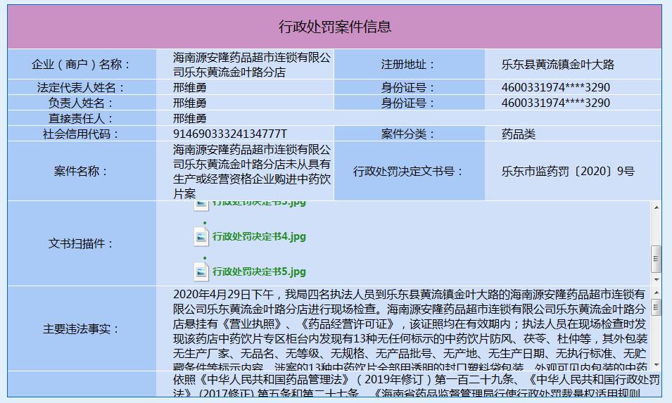 海南源安隆药品超市连锁有限公司乐东黄流金叶路分店