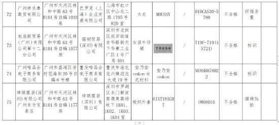 近日,广州市人民政府网站发布的一条来自广州市市场监管局的抽查信息显示,2019年,广州市市场监督管理局对流通领域国际品牌服装产品质量进行了监督抽查,共抽查了75批次样品,经检验,有10批次产品不符合标准要求。