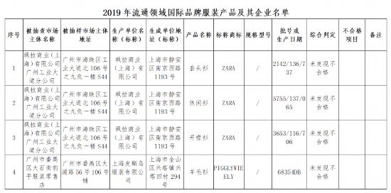《2019年流通领域国际品牌服装产品及其企业名单》部分截图