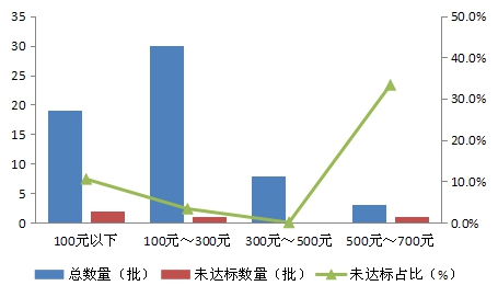 未达到标准要求项目 | 未达到标准要求批次 (批) | 总批次 (批) | 占比 (%) |