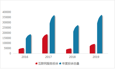 图4:2016-2019年互联网服务投诉量与年度投诉总量对比图