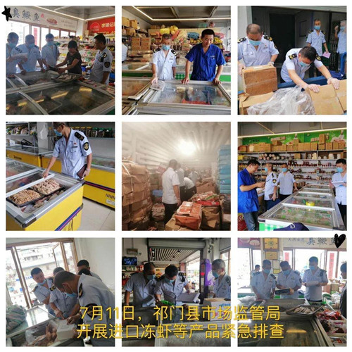 合肥市市场监管局连夜部署开展排查行动,并通知全市各大批发市场、超市对通报涉及到的三家企业的厄瓜多尔白虾进行全面紧急自查。7月11日上午,该局执法稽查人员全员出动,对市区各大批发市场、超市等经营场所来自厄瓜多尔的冻虾等产品进行全面检查管控。