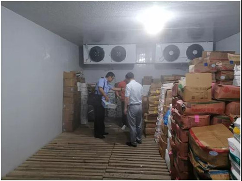 图为宣城市局执法人员检查食品贮存冷库