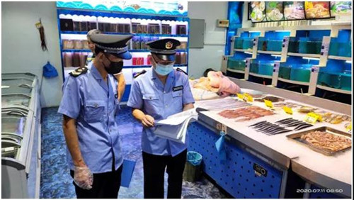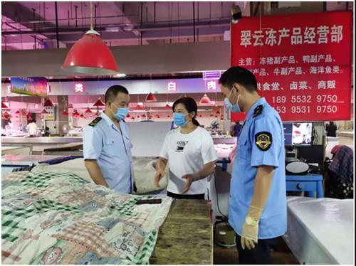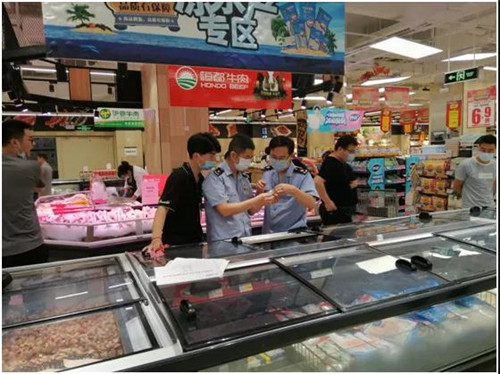 7月10日至12日,全省市场监管系统执法人员紧急出动,重点对各大超市、批发市场冷鲜批发零售企业、食品贮存冷库等经营单位开展检查,并要求进口食品经营主体启动自查。合肥、六安市局主要负责人率队开展检查,芜湖、宿州市局对辖区相关经营主体开展地毯式检查,淮北市局制作播放宣传短视频。通过现场检查发现,全省各市场经营主体能够落实食品安全主体责任,严格按照要求开展自查,主动下架涉事冻品。执法人员对排查到的涉事冻品一律要求停止销售、就地封存,对相关环境进行消毒处理,并上报各地疫情联防联控指挥部,配合做好后续处置工作。
