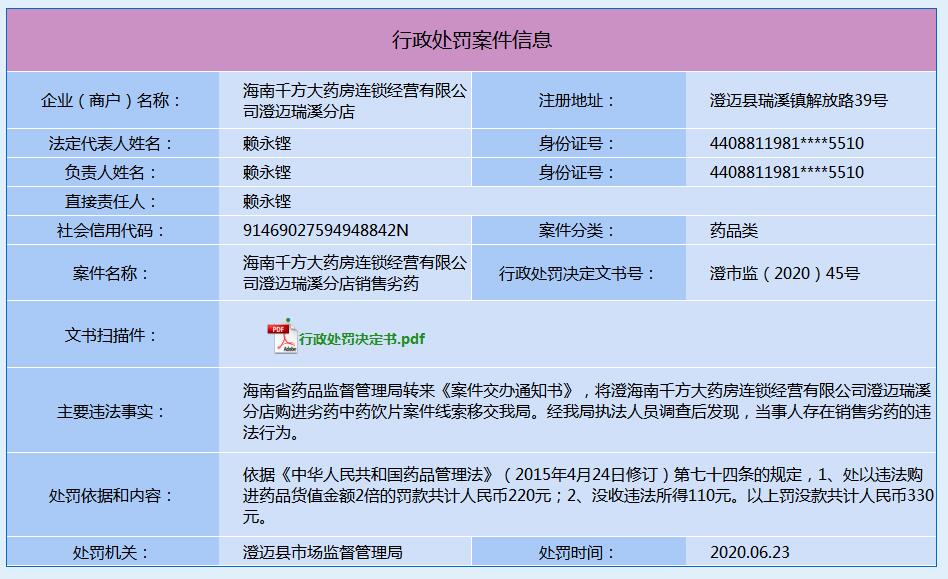 海南千方大药房连锁经营有限公司澄迈瑞溪分店
