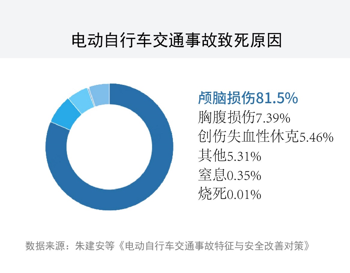 据公安部交通管理局数据显示,摩托车、电动自行车驾乘人员死亡事故中,约80%为颅脑损伤致死。而事故发生时,骑行头盔可使受伤者的比例下降70%,死亡率下降40%。