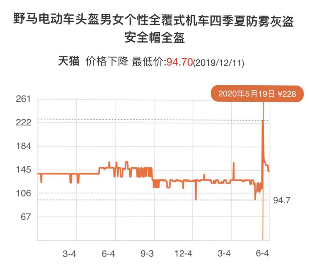 某电商平台上一款头盔的价格走势。(数据来源:慢慢买)