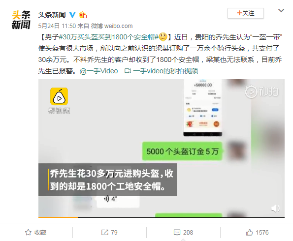 骗子也趁机入局。有媒体梳理发现,仅5月17、18日两天,与头盔交易诈骗相关的警情便有12起。他们的手段和几个月前倒卖口罩的十分类似。