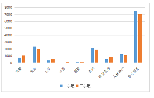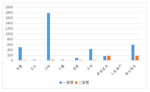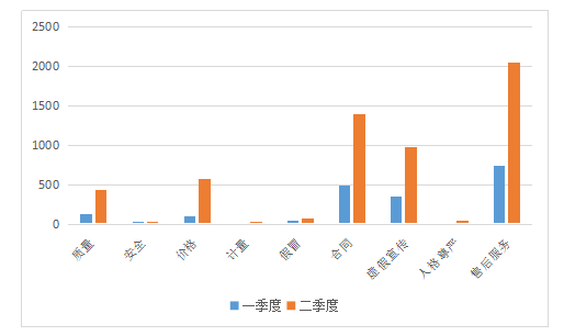 一季度,医药及医疗用品类投诉增长至4335件,投诉问题主要集中在价格方面,共1784件,占比41.15%,而售后服务、质量、合同等问题投诉也均在500件上下。第二季度,医药及医疗用品类投诉大幅度下滑(仅471件),环比下降89.13%,反映出随着生产和监管力度加大,该领域消费矛盾得到遏制,市场总体向好。