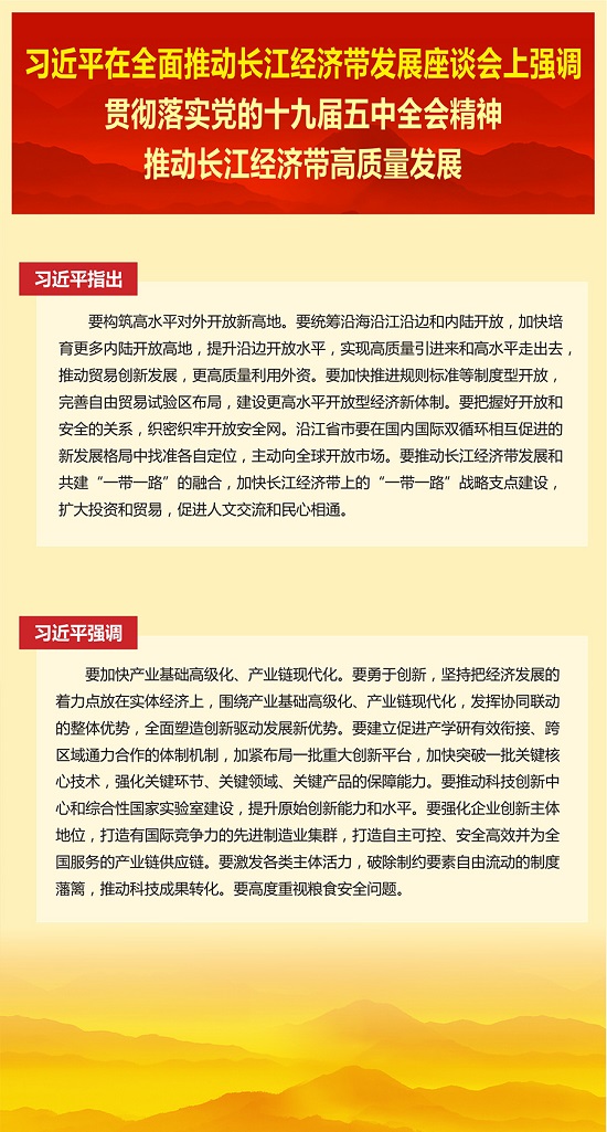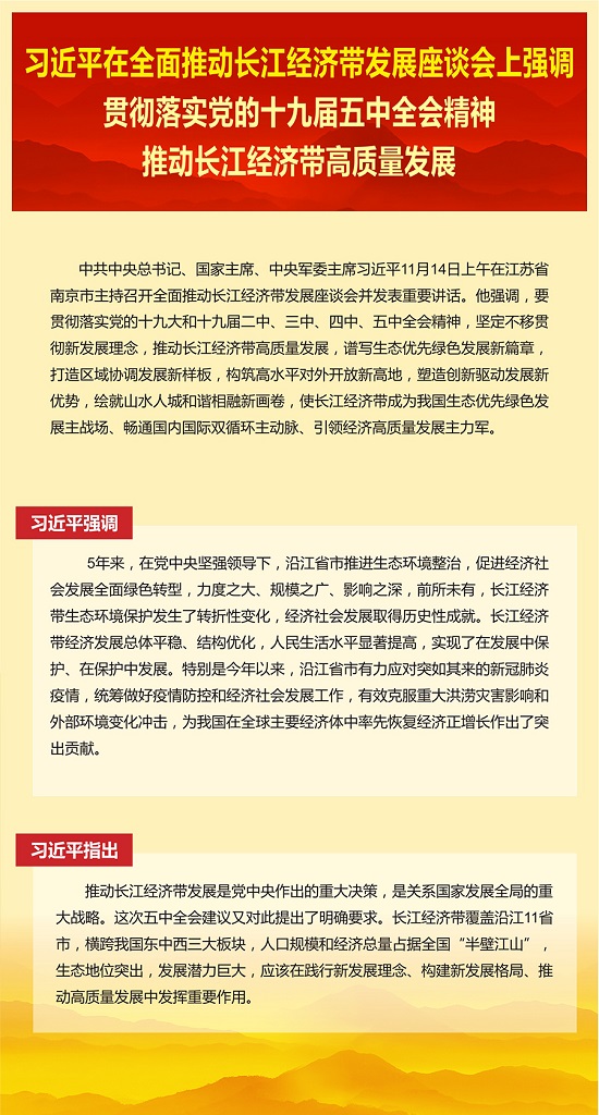 习近平在全面推动长江经济带发展座谈会上强调 贯彻落实党的十九届五中全会精神 推动长