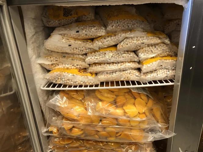 1. 原材料放置冰柜存放,摆放整齐。