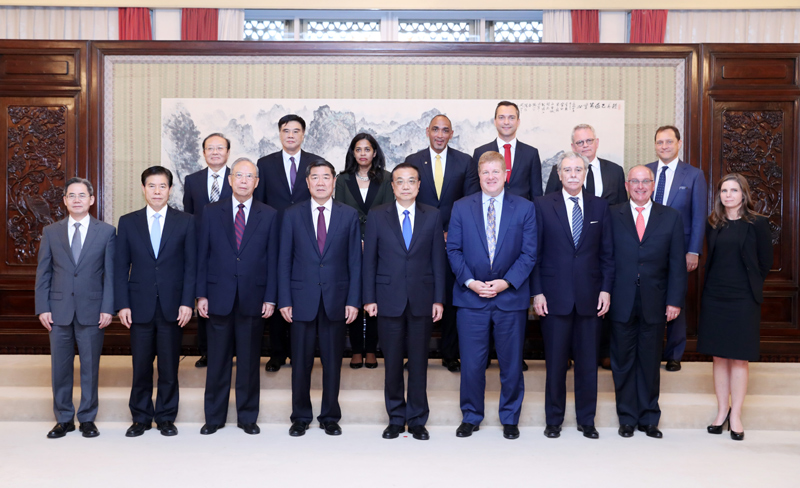 李克强会见出席中美企业家对话会的美方代表并座谈