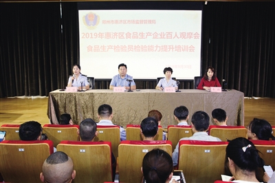 为进一步加强食品安全宣传工作,近日,郑州市惠济区市场监管局召开了食品生产企业百人观摩会及食品生产检验员检验能力提升培训会。该局执法人员、食品生产企业法人、小作坊负责人共百余人参加观摩培训会。